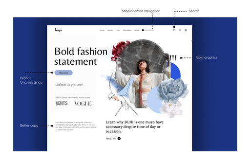 Modern, bold graphics, specially tailored to complement the brand and target audience.